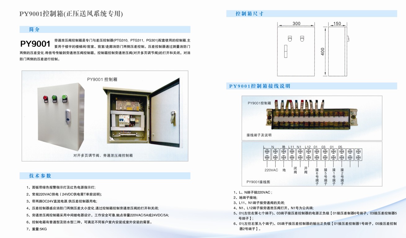 动作压力:电梯前室/走道:30Pa,(复位压力:25Pa);