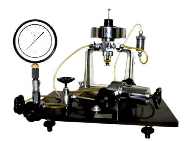 活塞系统和加在活塞上的砝码的重量作用在活塞有效面积上所产生的压力作为标准压力,通过管路的工作介质,将压力传递到精密压力表。