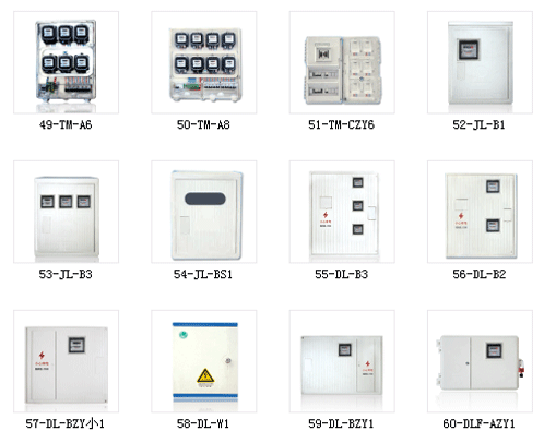 我公司引进国外先进技术新配方,本玻璃钢电表箱系采用 SMC不饱和聚酯玻璃增强纤维模压成型制作。其独特的性能,解决木制、钢制、塑料电表箱易老化、易腐蚀、绝缘差、耐寒性差、阻燃性差、寿命短的缺点,玻璃钢电表箱的优良性能,有绝对的密封防水性能、防腐蚀性能、防窃电性能、决不需接地线,外表美观,有锁与铅封的安全保护, 寿命室外可达 40 年以上, 室内 60 年以上,强度为 1N.m, 现有 1 表至 16 表的表箱样式全,模具有 200 余幅,同时具有能在表箱内安装、二级保护、单户开关、接线端子、箱外控制开关等多项功能。可直接固定墙上或安装电线杆上,安装机械表或电子表DD862、DD282等。安装接线盒、漏电开关DZ12、DZ18、DZ47、RCL熔断器以及隔离开关等。用户可以在箱体外直接操作开关。 公司产品开发部将根据客户要求,不断开发多项非标的机柜、箱体。