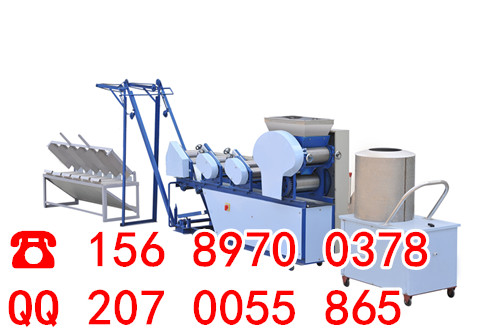 4.面条机器*生产面条的机器设备*面片加工:把开关置于“顺”的位置进行面片机工,拌好的面粉团经轧辊揉压时应由厚至薄调整轧辊间隙,进面厚度为出面厚度的2~3倍。经多次揉压后的面片可提高劲道及口感,建议用户充分利用该机的揉压功能。切条前的面片应在3~5mm厚,用卷面棒卷好后备用。