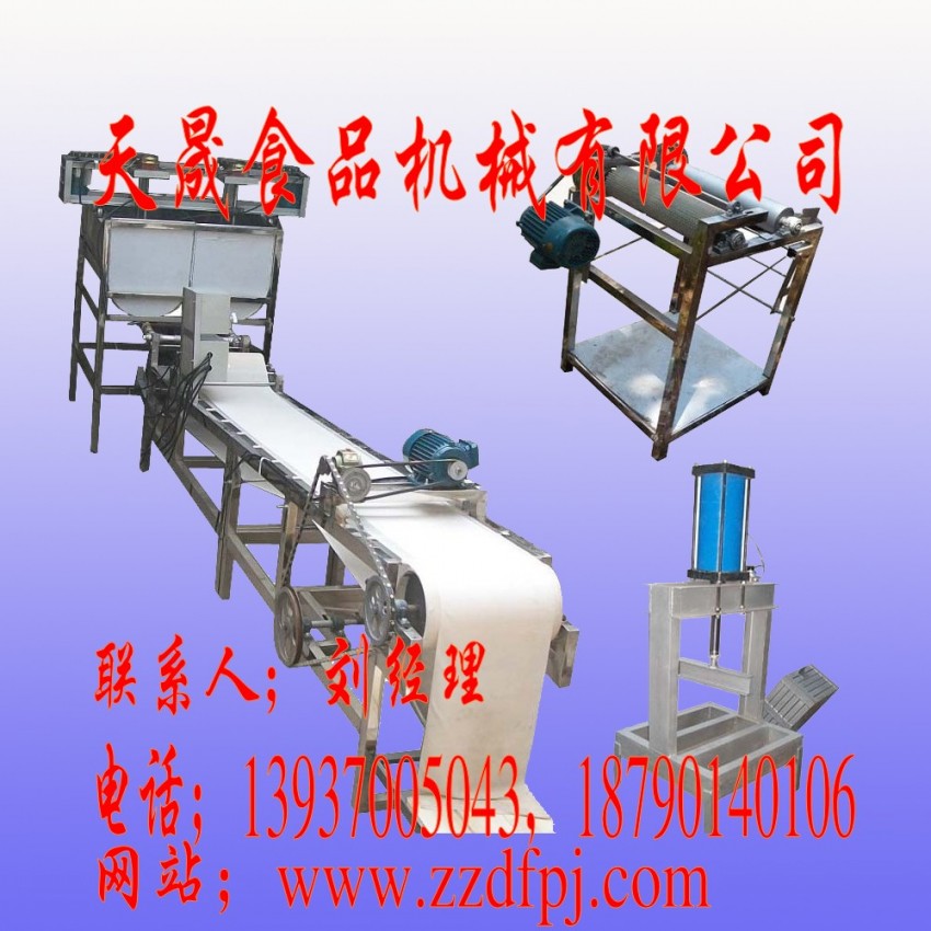 TS/辽宁干豆腐机@丹东干豆腐机厂家价格(天晟销售)河南天晟食品机械有限公司是一家专业生产各种豆腐皮机的厂家 , 我厂生产的豆腐皮机具有自动生产,效率高,安全卫生;制作快,成张性好等特点,豆腐皮机远销内蒙古,广东,四川,河南,江西等全国二十多个省市和地区。在目前市场中,豆腐制品的加工生产, 多数采用手工作坊制作而成, 其制作卫生条件不仅存在脏乱,差等现象, 而且由于人工煮浆等工序上对温度、温和比例的控制不当,选成豆腐制品。在色泽上出现泛黄状,口味上也含有点味苦=涩盒豆腥味,难以去除等现象, 众所周知, 这些食品识在没有完全煮沸的情况下面选成的, 久而久之会对人们的身心健康造成极大的影响。据此我公司的豆腐皮机所生产的豆腐皮成本低产量高,宽窄厚薄均可调整、产品色泽一致, 筋度好吃,口感良好, 开创了豆腐皮生产方面一次新的改革,是目前生产豆腐皮机械的最新型改良机械。