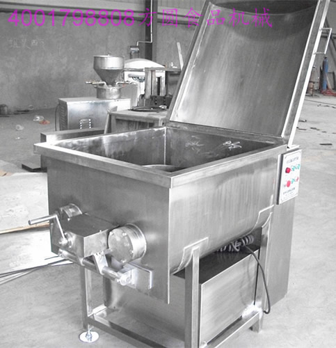 拌馅机是用于混料的必备设备,效率高,便于操作,是制作风干肠类产品、粒状、泥状混合肠类产品、丸类产品的首选设备,同时也是生产水饺、馄饨类面食产品的可选设备.优点:1、效率高,混料速度快.2、操作简单,方便自如3、独有的旋齿排列形式使物料混合更均匀,单次装料量更多. 4、自动出料,劳动强度更低 5、独有的三层密封保护使设.设备使用寿命更长,清洗更方便6、独有的旋齿排列形式使物料混合更均匀,单次装料量更多.
