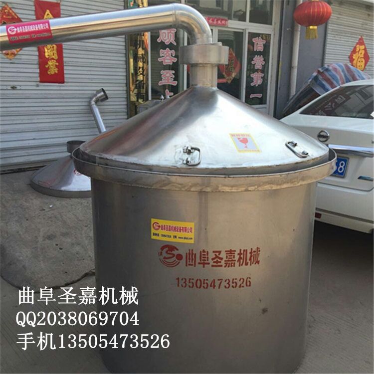圣嘉老字号酿酒设备生产厂家 生产酿酒设备安全性能稳定,酿酒设备优势明显:常压蒸馏,安全性好,使用寿命长;出酒快:30分钟即可出酒,2小时左右可蒸馏200斤粮食的酒;节约燃料:蒸馏200斤酒只需煤或柴40斤,节约燃料60%,出酒率高:比传统蒸酒设备提高出酒率5-10%;酒质好:蒸馏的酒达到国家一级白酒标准. 可节省人工80%,节省燃料60%,即只需要一、二十平方民房一间,一个普通劳动力。
