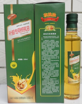 石家庄康福寿核桃油加工有限公司 康福寿核桃油加工有限公司于1996年2月25日成立,是以研发、生产和销售康福寿牌健康营养核桃油系列产品、特种植物油、药用植物油,葡萄籽油,杏仁油,高档家具养护油等系列产品为一体的科技型企业。 公司坐落于繁华都市——石家庄,从创办开始就积极抓住西部太行山的核桃资源优势,致力于健康食品的开发。目前,公司拥有现代的生产设备,规范化的生产车间,国内先进的生产技术及工艺,生产的‘康福寿”牌系列核桃油品质纯正,色泽清亮,富含维生素E和亚麻酸等多种营养元素。产品各项指标均优于国家标准,已通过国内贸易部油脂高品质量检验测试中心石家庄检测和相关部门认证,符合联合国教科文粮农组织建议的高级食用油标准,产品畅销全国20多个省市,并远销出口到欧盟、中东、独联体、东南亚等国家。 随着企业的不断壮大,康福寿核桃油加工有限公司开始实施全新的品牌战略,建立创新营销机制。按照现代企业制度,不断完善经营模型和管理机制,提高企业效益,拓展国内外市场,加强与国内外大中型企业的合作与交流,公司正朝着企业集团化、产品科技化、经营多元化的方向发展。 公司秉承一贯坚持“质量第一,用户至上,优质服务,信守合同”的宗旨,凭借着高质量的产品,良好的信誉,优质的服务,产品畅销全国近三十多个省、市、自治区。竭诚与国内外商家双赢合作,共同发展,共创辉煌。