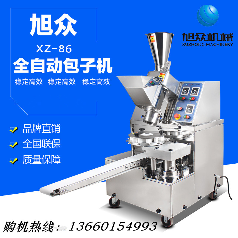 旭众XZ-86型全自动包子机免费保修一年,终身维护,免费师傅上门安装调试,免费提供工艺配方,全国联保!