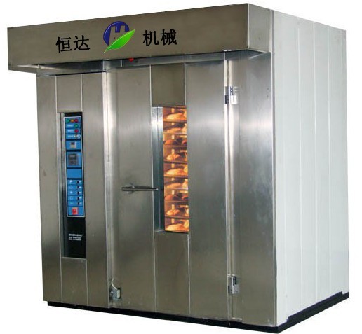 功能:炉内热风循环,自动控温,定时报警,开门自动停止,关门自动工作等优点,产量高,整车32盘进出,,升温快(点火10分钟内温度达200℃),小车自转和加湿装置融为一体、使食品受热均匀、色泽一致。