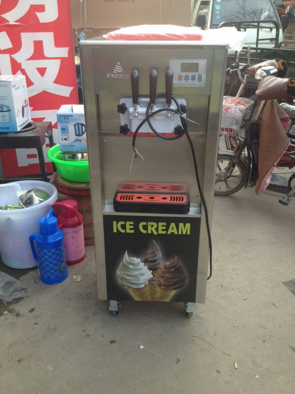 冰激凌机多少钱【冰淇淋机】HG-18冰淇淋机报价信息,冰激凌机又称为冰淇淋凝冻机,是用来生产冷冻甜品--冰淇淋而专门设计的自动化设备,按照用途来分冰淇淋机可以分为工厂流水线使用的大规模凝冻机和餐饮业使用的商用冰淇淋机,衡水华冠食品机械有限公司供应三色冰激凌机:有两个储料缸两个制冷缸和三个出料口同时可以出三种颜色即三种口味的冰激凌其中包括两种纯口味和一种混合口味。这种冰激凌机市场上比较常见。适合各类冰激凌店西餐厅酒吧咖啡店电影院等对冰激凌产量和口味要求比较多的场合使用。衡水华冠硬冰淇淋机是我公司系列冰淇淋机中的又推出一款11年全新的产品,它主要用于制作硬质冰淇淋。该机最大的特点是小巧玲珑,时尚的外观,操作简单,安装使用方便,若配备一台小冰柜即可成为盒装冰淇淋制作的小工厂,广泛适用于摊点、作坊、单位食堂及餐馆酒店,其次,该机采用线条鲜明即豪华美观,又便于清洗,洁净卫生.第三,该机选用搞品质压缩机和减速机,效率高,耗电省,安全可靠,将给你带来可观的经济效益。