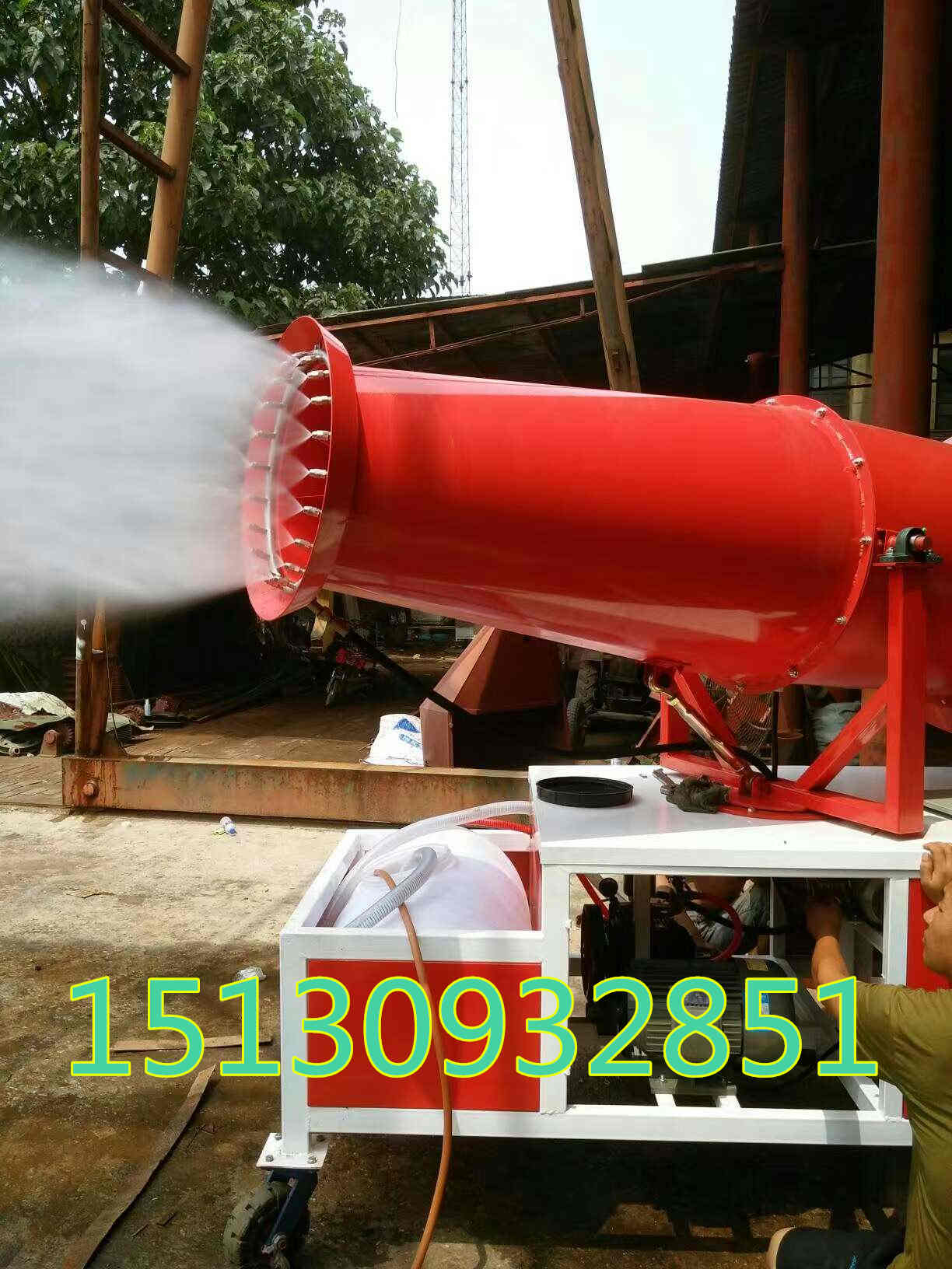金科风送式除尘雾炮机——除尘好帮手雾炮机产品特点:1. 风力强劲、射程远、覆盖范围广、工作效率高、可移动,操作简单方便。2. 上下左右采用遥控操作(可在驾驶室内操作)安全方便。3. 可实现常量、低容量和超低容量等多种形式喷雾。4. 可采用三相380V市电,固定安装在升降或混凝土浇筑的平台上使用,也可配套柴油发电机组供电安装在运输车辆上使用。雾炮机厂家 适用范围:1. 选煤场、矿区、煤炭堆场、港口煤场、电厂、钢厂、焦炭等粉尘污染治理。2. 拆房工地、水利大坝、公路桥梁等降尘、降温。3. 垃圾堆场以及自然灾害过后的大面积消毒、防疫。一.用途:治霾抑尘雾炮机是利用风机的原理将水转化成50-200微米的水雾,形成高远程的射程喷射空中,与颗粒扬尘相结合增加其重量,使扬尘颗粒下沉。可以进行360°的旋转,洒水没有盲区,喷雾均匀,耗水量少,没有大面积的积水,可以达到理想的降尘效果。二.雾炮机结构组成:水箱、水管、柱塞水泵、喷嘴、风机,发电机组(汽油或柴油)、水平转向装置、垂直俯仰装置,电控箱,遥控器等组成。三.特点:可随车装备、机动灵活、操作性能可靠;· 射程远、覆盖面积大、所喷射水雾颗粒细小、与空气中的尘埃接触迅速,并形成一种潮湿雾状体,加重尘埃自重,加速尘埃降沉,抑制尘埃扩散;·适用范围广、工作效率高、车载式可边行驶边喷雾(根据型号选择)、喷雾速度快、对尘埃有较强的穿透力和雾珠附着力、能有效地节约用水和减少环境污染;· 遥控/手控兼容、起动快捷、使用安全、灵活方便;· 可实现自动水平旋转360° 喷雾方便、覆盖面积大;俯仰角度(-10°~55°),可方便调整喷雾高度。