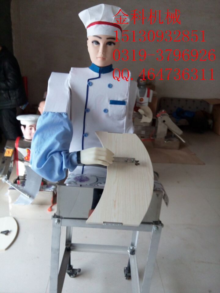 自动刀削面机器人 刀削面机器人厂家报价 刀削面机器人介绍巨鹿金科机械厂坐落于河北省南部-全国的机械制造之乡-华龙工业区。本厂成立于2010年,是一家集研发、生产、销售、售#后#服务一条龙的食品机械厂。拥有员工二十余名及多名技术人员,师资力量雄厚,自成立十余年来,本厂一直秉承以高质量的产品为核心,以完善的售#后#服务为铺垫。打造国内食品机械领军品牌。       金科机械一贯秉承“信守合同、 用户至上、售#后#完善”的办厂宗旨。曾荣获河北省质量监督局授于的重合同守信誉单位,邢台市技术监督局授于产品质量信得过单位和高新技术企业认定证书。      欢迎新老客户及经销单位参观考察洽谈合作发展      24小时免费销售咨询:400-639-8578刀削面机器人介绍:电压:220(V)功率:180(Kw)外形尺寸:540x450x980(mm)净重:100(Kg)包装:木箱 机器人刀削面机使用方法: 1.插上电源。 2.按上升按钮,使机器右臂上升至最上位置。 3.把和好的面团揉捏成月牙状,然后摆正放在左臂的托面板上。 4.按下降按钮,然后将手持刀片的右臂下降,越离面团表面0.5mm的位置停止。 5.按启动按钮使机器进入正式削面的状态。 6.根据一次性削面的数量可以随意调节大碗、中碗、小碗。如;需三大碗,设置完成后,在按运行即可。一般大碗可运行设定为150-200之间,根据面的长短、碗的大小自由设定。 7.面条的薄厚及碗的大小的调整;面条厚度,碗大小秒数,可根据用户的需求随意调整面条的厚度。 8.面条的宽窄的调整:将螺丝向外旋转面条变宽、向里旋转面条变窄,可根据客户的要求随意调节。 刀削面机器人特点:     1、外体大部分采用不锈钢材料依照人体外形模压成型,内置动力装置和传动控制装置;   2、耗电省,10小时耗电不超过2度;每分钟削面180根,是传统机器人刀削面机的3倍,外形更加美观!   3、工作效率高,相对人工技师而言不存在疲劳和受情绪波动而影响工作效率的情况。且无需聘用人工技师所支付的工资、吃住及福利等一切用工成本。真可谓一次投资,长远受益!   4、削出的面状如柳叶,长短厚薄均匀可调,口感筋道,这一点是人工技师难以实现的;   5、使用寿命10年以上毫无问题,故障率极低,随机附带备用易损件;   6、底部装有万向轮便于移动和固定,操作使用方法极其简单。    其中奥特曼刀削面机器人就一个很好的代表,奥特曼刀削面机器人不仅可以替代人工技师执行削面工作也可以按预先编排的程序去完成标准的削面工作,还可以临时接受人工指令改变工作状态。   是人工智能技术应用于餐饮领域的重大突破,其主要特征如下:外体大部分采用不锈钢材料依照人体外形模压成型,整体重量仅50公斤;耗电省,10小时耗电不超过2度;工作效率高,相对人工技师而言不存在疲劳和受情绪波动而影响工作效率的情况。且无需聘用人工技师所支付的工资吃住及福利等一切用工成本。真可谓一次投资,长远收益!削出的面状如柳叶,长短厚薄均匀可调,口感筋道,这一点是人工技师难以实现的;   一分钟三碗面,削面工奥特曼“办公”的地方就是“机器人刀削面”店的门口。2011年,河北巨鹿金科机械厂抓住广大创业者的自主创业的发展生机,重新定位,以树立中国小吃品牌和推广地方特色小吃为发展方向,让加盟商创造成功,让客户品味小吃美味!倡导健康、美味、快乐,让“大俗”的小吃以“大雅”的姿态在中国美食的舞台上崭露头角。公司主营项目:刀削面机奥特曼机器人,刀削面机,厨师型机器人刀削面机等。