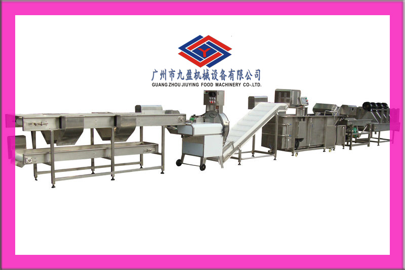 本生产线一共5 台设备,分为双层挑选机—切菜机—提升机—鼓泡清洗机--—风干机(震动沥水),整条生产线的总功