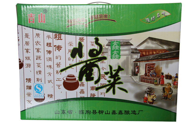 潍坊质量好的酱菜礼盒批售|酱菜礼盒供应商公司信息 鑫鑫酿造是潍坊市一家专业的生产型公司,公司主要从事酱菜礼盒的生产经营,自1994-08-22伊始,始终坚持“专业、诚信、值得信赖”为中心价值,多年来受到了广大个人、经销商等的一致好评与肯定。公司希望能与更多合作伙伴携手合作。联系电话:15964598828,联系人:李经理 供应酱菜礼盒,酱菜礼盒批发 请认真阅读以下信息产品参数制作工艺精湛包装箱装生产地址临朐县柳山镇政府驻地生产厂家柳山鑫鑫酿造厂售#后#维#修#地区全国服务地区全国售卖方式批发;零售;直销产品等级高级产品详情 柳山鑫鑫酿造厂坐落于具有风景秀丽的山东临朐,我公司充分利用驻地广阔的各种农夫特色产品资源,专业致力于蔬菜制品和各种农副产品的保存保鲜、科研攻关、成品开发、技术专利、以及生产和销售。
