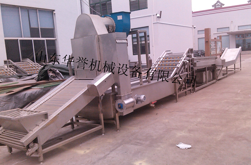 概 述/Product Overview 设备除电机、轴承等标准件外均采用不锈钢SUS304/2B材料制作,完全符合出口食品卫生要求。设备中设有气泡发生装置,使物料呈翻滚状态,去除产品表面农残功效,同时可加入适量的药剂,进行消毒固色,漂浮物可以从溢流槽溢出,沉淀物从口排出,以达到清洗的目的。气泡清洗机是针对外形要求高的物料设计,适用于:蔬菜、水果、水产品等颗粒状、叶状、根茎类产品清洗、浸泡。 原料在水槽高压和强力气泡作用下,被充分打散,翻流、清洗、传送。从物料表面脱洗的泥沙沉入底部隔离仓,不会发生翻扬回流造成再度污染,漂浮水中杂质、小虫,通过去杂机构网孔收集,下次过毛辊清理掉,洗净后物料出水后再经喷淋清洗,送至下到工序。