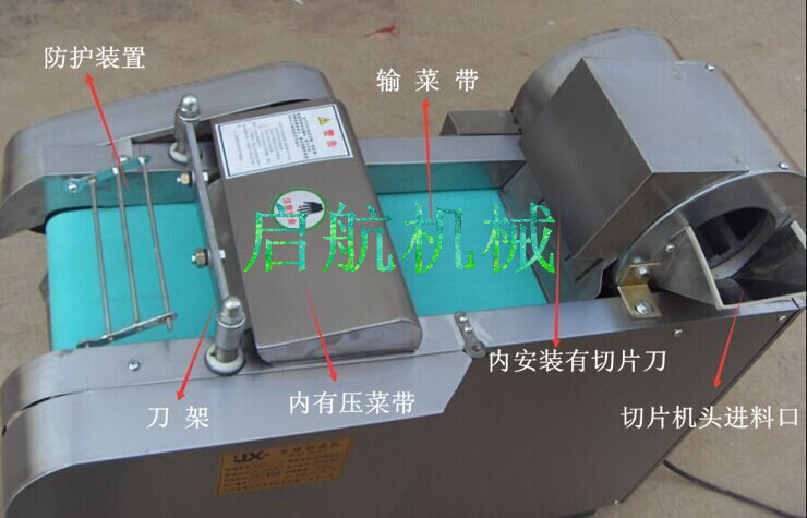 2、本机适用于硬、软各种根、茎、叶类蔬菜和海带的加工,可切制成片、块、丝、丁、菱形、曲线形多种花样。