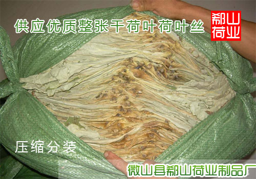 【采制贮藏】:6~9月夏秋二季采收,晒至七、八成干,除去叶柄,对折成半圆形或扇形,晒干,置通风干燥处,防蛀。夏季,亦用叶或初生嫩叶(荷钱)。荷叶食物相克:荷叶畏桐油、茯苓、白银。