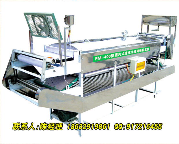 10.使用本机洗面和不洗面均可制作,厚薄可调,不需拆机清理,靠边仪表控制操作,无需用刷抹油。能制作凉皮、米皮、擀面皮、银丝面等产品。生产时,只要将面水倒入料斗内,出机即为熟制品。并通过调整工艺和温度,可使面皮表面产生起泡(膨化)、起花纹、表面光亮平整等不同效果,可根据各地流行口味自由选择。