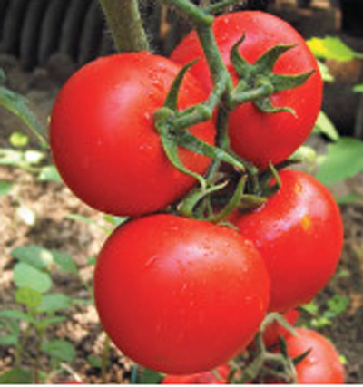 *果实高圆型,硬度极好,单果重250克左右,大果可达400克以上,口感极佳,商品性好,耐储运,适应性广,抗病突出,是目前国内番茄种植基地首选品种。