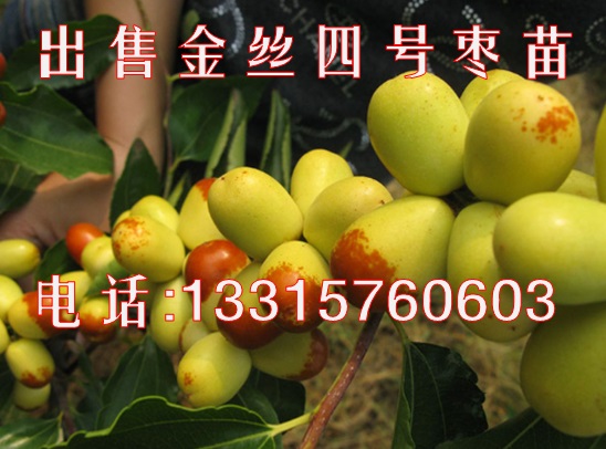 我处现有150万株金丝四号枣苗,我公司枣树苗为归圃嫁接育苗,根系发达、成活率高、签订苗木纯度及保活合同。并免费为客户起苗、分类、包装、保鲜、检疫、配回程车等一切手续。(长期有效)