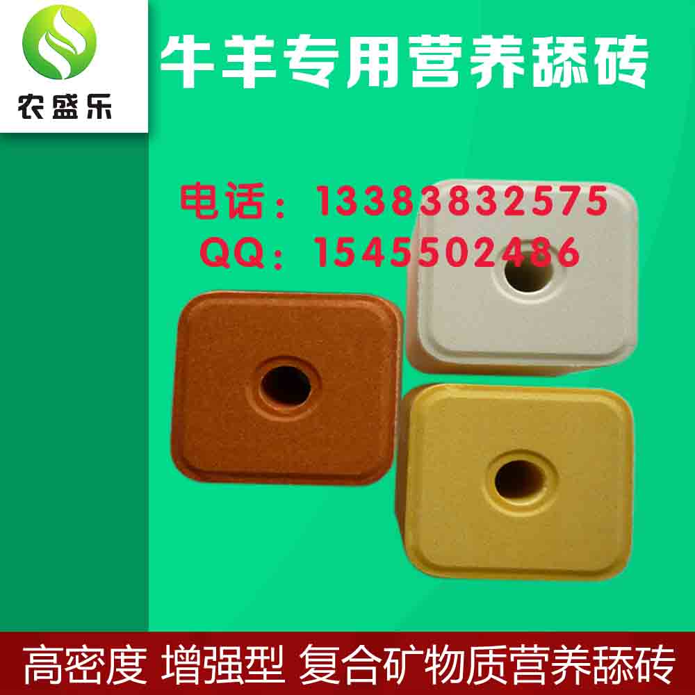 农盛乐舔砖是将牛羊所需的营养物质经科学配方和加工工艺加工成块状,供牛羊舔食的一种饲料,也称块状复合添加剂,通常简称“舔块”或“舔砖”。上世纪80年代以来,舔砖已广泛应用于60多个国家和地区,被农民亲切地称之为“牛羊的巧克力”。农盛乐舔砖订购电话:13383832575,QQ:1545502486