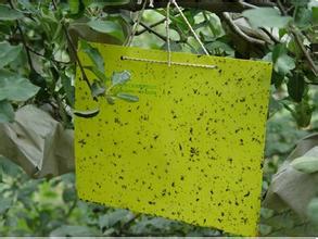 (三)用于果树,尤其柑橘诱捕橘潜叶蝇,白粉虱,大树挂一片,当年叶果完好,效果特好。