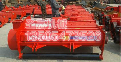 该秸秆回收机是一种收割玉米、高粱等作物时不需要分行收割的中型自走式秸秆收获机。该秸秆回收机机主要由底盘、不分行玉米割台、喂入装置、切碎装置、抛送装置等部件组成。底盘既能满足自走式收获机的行走和各工作部件的传动需要,还有拖车的挂接机构;不分行玉米割台在分禾器分开作物后,由两个横向一字形排列的圆盘切割器切割作物,切下的作物由两个小分禾器与两个喂入滚筒上的拨齿一起共同夹持输送作物到喂入装置;喂入装置由上面前、后两个喂入辊,下面前、中、后三个喂入辊组成,其中两个上辊能浮动,其作用是将作物压实并输送到切碎装置;切碎装置结构为滚筒式,动刀采用V型排列,其作用是将作物切成一定长度的饲料;抛送装置主要由上、下抛送筒、抛送导向板和加速风扇等组成,加速风扇位于下抛送筒的上部,使物料快速被抛出,上抛送筒运输时可放下,能左右各旋转90度,抛送筒尾部盖板可调角度,这样可以满足挂拖车接饲料的要求,也可以满足拖拉机自挂拖车接饲料的要求。
