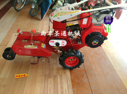 本机器包括机架、可调高低扶手,机架上设有(风冷或水冷)柴油机或汽油机、机架和扶手上设置有变速箱,变速箱的输出轴上设置有能够沿轴移动的驱动轮或链轨.传动方式主要有:全齿轮传动、皮带传动、链条传动三种传动方式.该机具有重量轻,油耗低、相对功率大,结构紧凑、机动性强、操纵轻便灵活的特点。可爬坡、越埂、阶梯性强。广泛适用于平原、山区、丘陵的旱地、水田、果园、菜地、烟地的深旋耕、浅旋耕、犁耕。配上相应机具可进行旱地旋耕、水田旋耕、抽水、开沟、喷淋、喷药除草碎土等作业,还可牵引拖车进行短途运输,是大中型农机无法媲美的多功能田园管理机,工作稳定可靠、使用寿命长、维修方便等特点。是进入农民家庭最理想的田园管理机。
