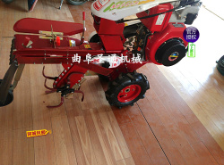 本机器包括机架、可调高低扶手,机架上设有(风冷或水冷)柴油机或汽油机、机架和扶手上设置有变速箱,变速箱的输出轴上设置有能够沿轴移动的驱动轮或链轨.传动方式主要有:全齿轮传动、皮带传动、链条传动三种传动方式.该机具有重量轻,油耗低、相对功率大,结构紧凑、机动性强、操纵轻便灵活的特点。可爬坡、越埂、阶梯性强。广泛适用于平原、山区、丘陵的旱地、水田、果园、菜地、烟地的深旋耕、浅旋耕、犁耕。配上相应机具可进行旱地旋耕、水田旋耕、抽水、开沟、喷淋、喷药除草碎土等作业,还可牵引拖车进行短途运输,是大中型农机无法媲美的多功能田园管理机,工作稳定可靠、使用寿命长、维修方便等特点。是进入农民家庭最理想的田园管理机。
