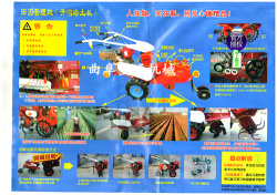 本机器包括机架、可调高低扶手,机架上设有(风冷或水冷)柴油机或汽油机、机架和扶手上设置有变速箱,变速箱的输出轴上设置有能够沿轴移动的驱动轮或链轨.传动方式主要有:全齿轮传动、皮带传动、链条传动三种传动方式.该机具有重量轻,油耗低、相对功率大,结构紧凑、机动性强、操纵轻便灵活的特点。可爬坡、越埂、阶梯性强。广泛适用于平原、山区、丘陵的旱地、水田、果园、菜地、烟地的深旋耕、浅旋耕、犁耕。配上相应机具可进行旱地旋耕、水田旋耕、抽水、开沟、喷淋、喷药除草碎土等作业,还可牵引拖车进行短途运输,是大中型农机无法媲美的多功能田园管理机,工作稳定可靠、使用寿命长、维修方便等特点。是进入农民家庭最理想的田园管理机。