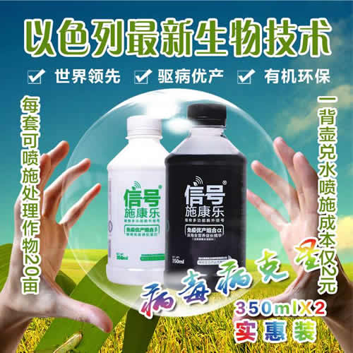 超敏蛋白“信号施康乐”是四川海博氏生物科技有限公司2012年全新引进以色列著名农业生物科研机构——“Galilee-Green(嘉利利-绿色)实验室新研究成果。该产品是一类新型、安全、稳定、高效的新概念生物制剂(超敏蛋白、植物免疫诱抗剂、植物疫苗)。 其来自于一种微生物的天然蛋白产物,天然、安全、无毒,它基于细胞信号传导途径,从转变传统农药作用机制着手,通过受体及传导,激活植物细胞内的信号物质,诱导植物多条信号通道和代谢途径的基因高效表达,进而激发和提升植物共有功能机制和潜能。并且可使植物主动抵抗由病毒、细菌、真菌等病原物所造成茎的腐、锈病、疫病等70余种病害浸染,减少50%的农药用量,是目前市面上一款真正意义上抗病增产的蛋白产品。