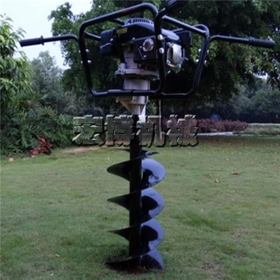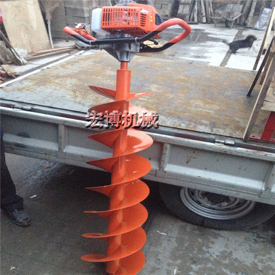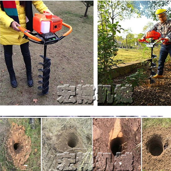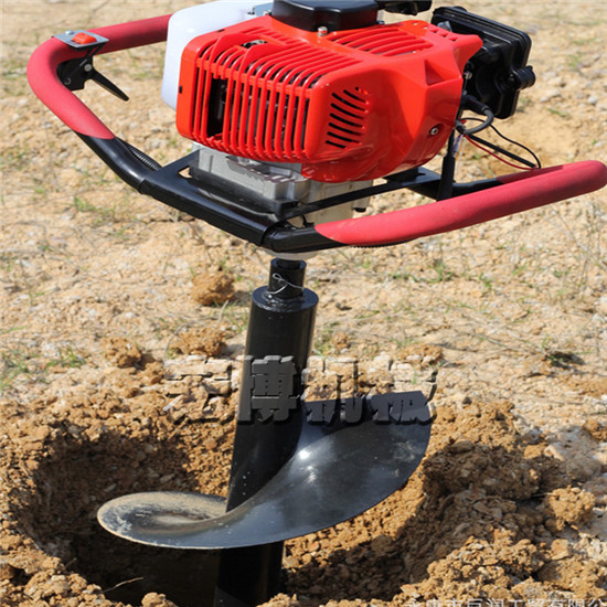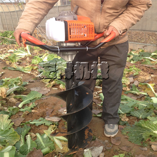 小型通用汽油机,超越离合器,高减速比传动箱及特殊设计的钻具组成适合于<20度以下的坡地、沙地、硬质土地的植树造林或果树种植,道路两侧绿化植树等。苗木种植挖穴,畜牧围栏埋桩挖穴;葡萄胡椒种植埋桩挖穴;果树、林木施肥挖穴。钻头直径(mm):80 100 150 200 250 300 400mm