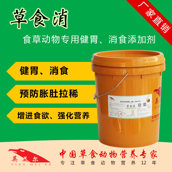 商品描述::草食消-健胃消食剂,对牛、羊、兔、驴等都能起到健胃消食、消胀气的作用。能抗应激、少疾病、增进食欲,促进营养物质消化吸收,提高饲料报酬。