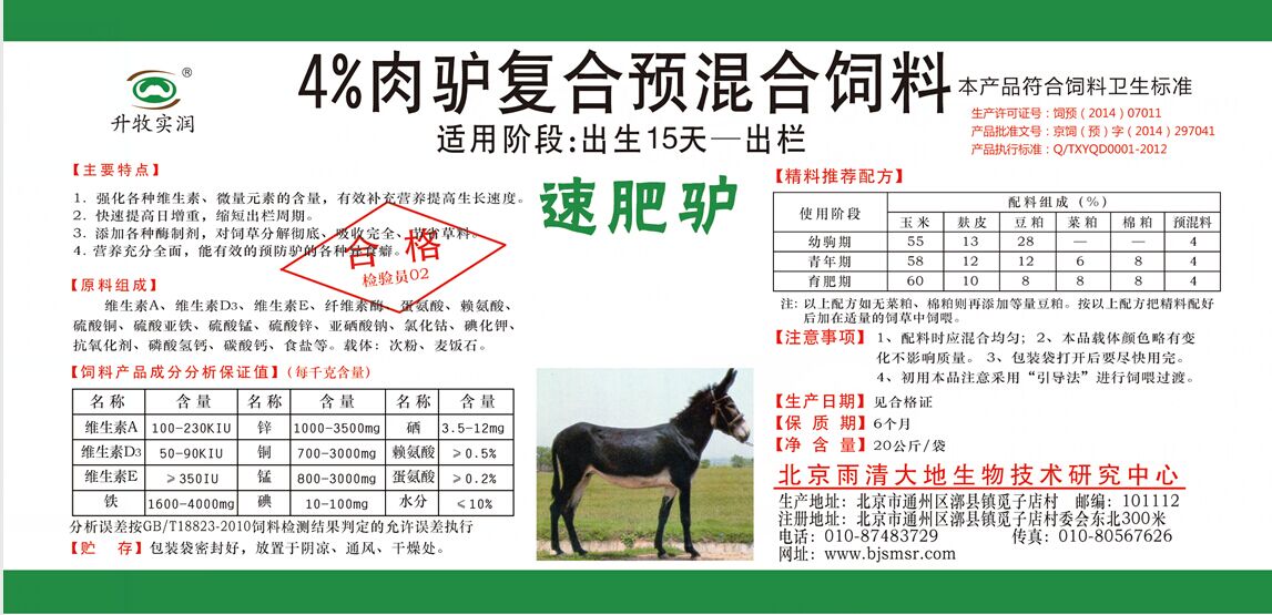 2 添加了多种稀有元素及未知生长因子、对驴后期催肥效果尤为显著!