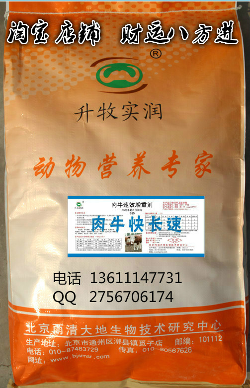 肉牛快速育肥专用预混料--5%肉牛快长速,可以显著提高肉牛的育肥速度,单位体形称重大,提高养殖效益。长期使用可以提高牛肉档次,肌肉大理石纹清晰、嫩度高、失水率低。可以调节瘤胃环境,有利于瘤胃有益微生物繁殖,对提高瘤胃功能效果显著。特别是育肥前期能提高青年牛的骨骼发育速度,迅速开张骨架,使肉牛有一个硕大的育肥体形;由于有理想的体形基础,育肥后期能够迅速增重,迅速促进肌肉生长和脂肪沉淀,显著提高育肥速度,日增重可达1-2kg,淘汰牛育肥日增重可达3kg以上。