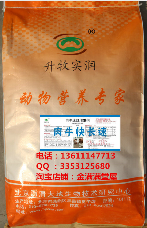 肉牛快速育肥专用预混料--5%肉牛快长速,可以显著提高肉牛的育肥速度,单位体形称重大,提高养殖效益。长期使用可以提高牛肉档次,肌肉大理石纹清晰、嫩度高、失水率低。可以调节瘤胃环境,有利于瘤胃有益微生物繁殖,对提高瘤胃功能效果显著。特别是育肥前期能提高青年牛的骨骼发育速度,迅速开张骨架,使肉牛有一个硕大的育肥体形;由于有理想的体形基础,育肥后期能够迅速增重,迅速促进肌肉生长和脂肪沉淀,显著提高育肥速度,日增重可达1-2kg,淘汰牛育肥日增重可达3kg以上。