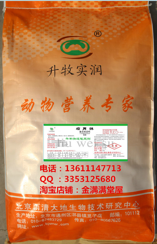它是一种包含瘤胃素、有机铬制剂等促生长类饲料添加剂的产品。它能有效解决育肥牛羊在后期催肥过程中采食过多精料等引起的一系列消化不良性疾病,达到快速催肥促生长的效果。公司是目前为数不多的一家生产瘤胃素饲料添加剂的生产厂家。本公司提供专业的草食动物添加剂预混料