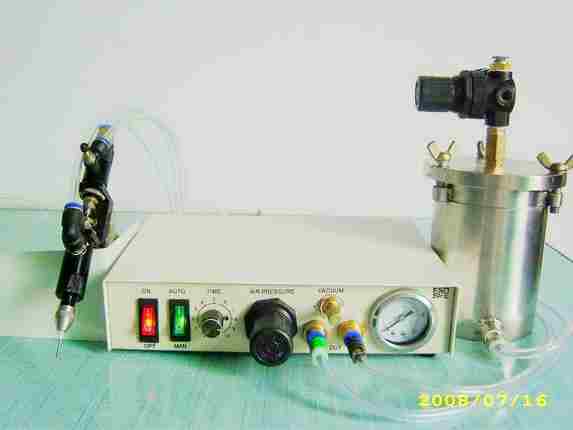 供应大容量点胶机AS-985 此机配不锈钢桶,内可装置大量的胶水,减少了经常加胶水的烦恼,提高生产效率,配合点胶阀出胶,使用精确。