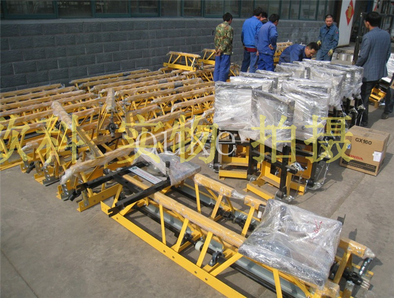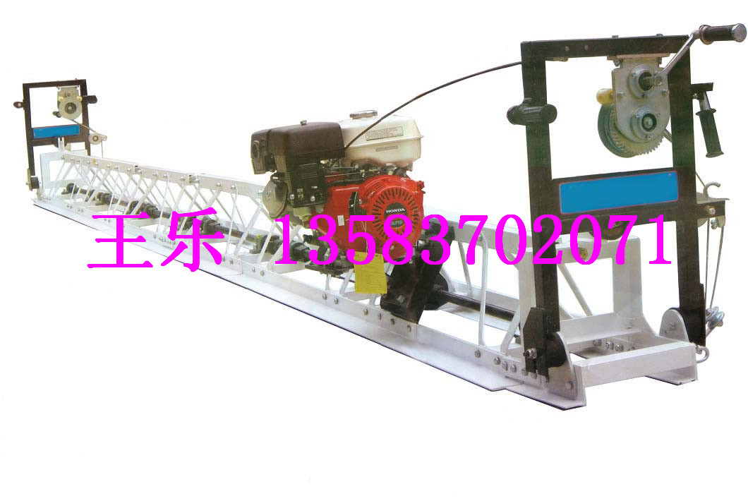 友情提示:如果您是修6米的路,那您要用6.5米的振动梁,因为要留出来两边各25公分的位置放槽钢。两旁的手摇轮控制形式方向是正直的。可以配有电机和汽油机。7米以下的用4KW的电机,16米以下用5.5KW的电机,再往上就是7.5KW电机,7米以下的用5.5马力的汽油机,9米以下的用9马力的汽油机,16米以下的用13马力的汽油机。本甜发动机质量保证价格低廉。