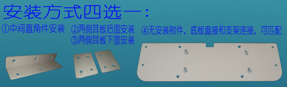 5. 安装方式分为:上面安装、后面安装、底面安装、无安装附件(适用于配套按钮盒支架或者自行打孔安装);