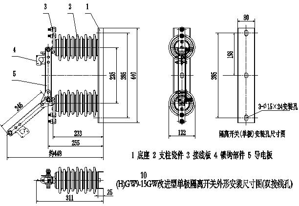 GW9、HGW9型户外高压隔离开关系单相交流50赫兹高压开关设备,用于额定电压为10~35kv的电力系统中,作为有电压负荷时分合电路之用.本开关用绝缘棒进行操作