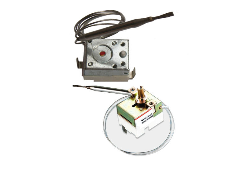 H系列液胀式温控器和限温器的原理:当被控制对象的温度发生变化时使温控器感温部内的工质产生相应的热胀冷缩的物理现象(工质体积变化),与感温部连通一起的膜盒产生膨胀或收缩。通过杠杆原理,带动开关通断动作,达到恒温目的。H系列液胀式温控器具有控温准确,稳定可靠,开停温差小,控温调节范围大,过载电流大等性能特点。在生产,100%做96小时的老化测试,可以避免因慢泄漏而造成的温度漂移。