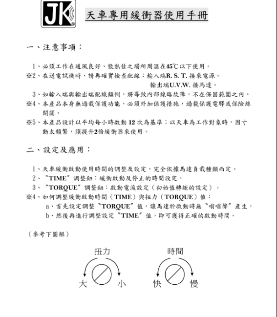 JK马达缓启动器,使用在风车马达、搅拌机械、研磨机械、粉碎机械、天车、油压电梯,达到缓慢启动,减少瞬间启动电流。当马达异常时,可以保护马达。
