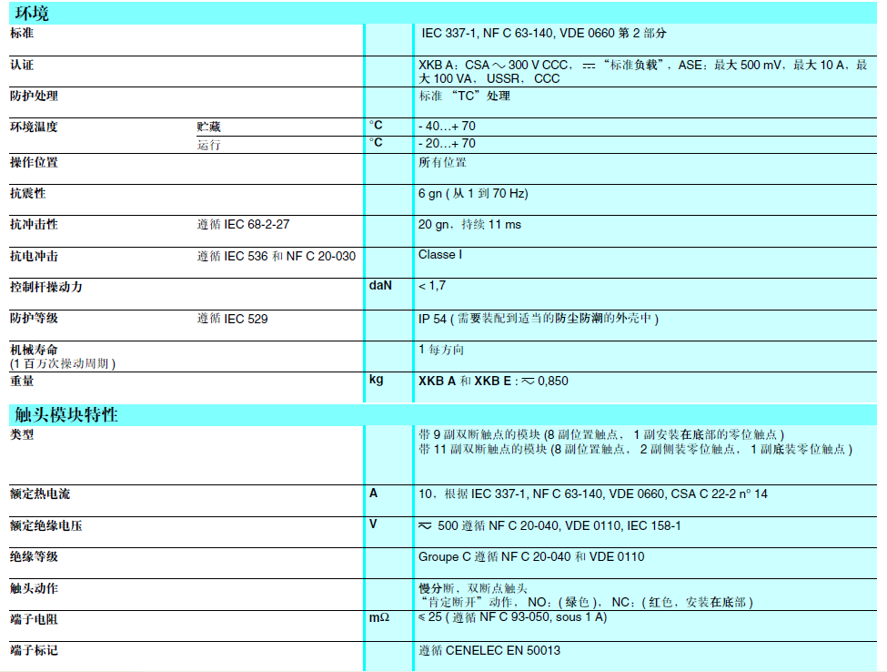 每种类型的触点块允许用户使用1 副额外的触点,其功能由选择的手柄类型决定。