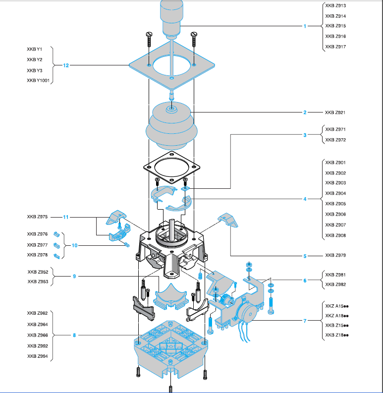 控制杆的完整行程可以被限位块限制:20° 限位块 (XKB Z972) 或12° 限位块(XKB Z971)与限位门Y 或Z配合使用。