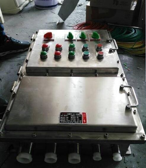 B、非标配电箱:外壳采用钢板焊接成型,表面喷塑。分主腔和接线腔,均采用隔爆型结构,内可选装高分断断路器、交流器、热继电器、控制按钮、灯等元件,通过操作壳盖上的手柄实现分合,性能可靠,并设有分合显示灯。进出线采用钢管或电缆布线均可,进出线口方向及内部元件可由用户要求而定。其它材料及外形均可根据用户要求订制。