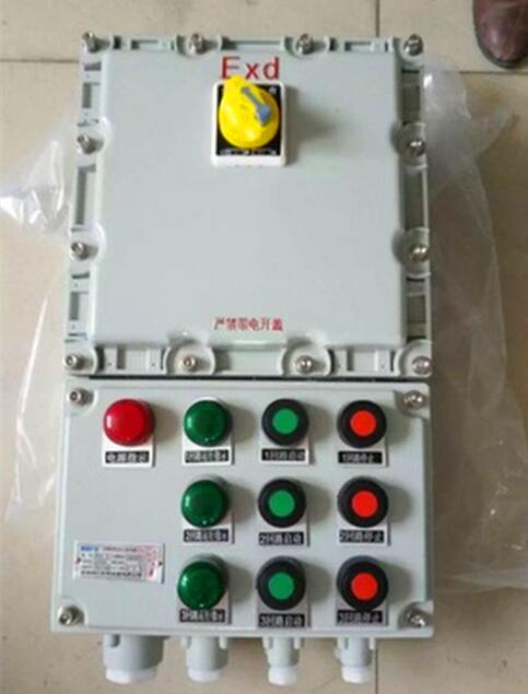 B、非标配电箱:外壳采用钢板焊接成型,表面喷塑。分主腔和接线腔,均采用隔爆型结构,内可选装高分断断路器、交流器、热继电器、控制按钮、灯等元件,通过操作壳盖上的手柄实现分合,性能可靠,并设有分合显示灯。进出线采用钢管或电缆布线均可,进出线口方向及内部元件可由用户要求而定。其它材料及外形均可根据用户要求订制。