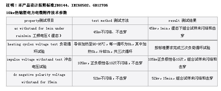 10KV热缩电缆附件主要材料技术参数