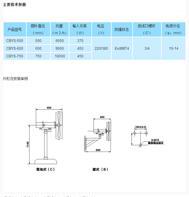 BTS-500落地式防爆摇头扇石油化工企业专用风扇生产厂家技术参数: