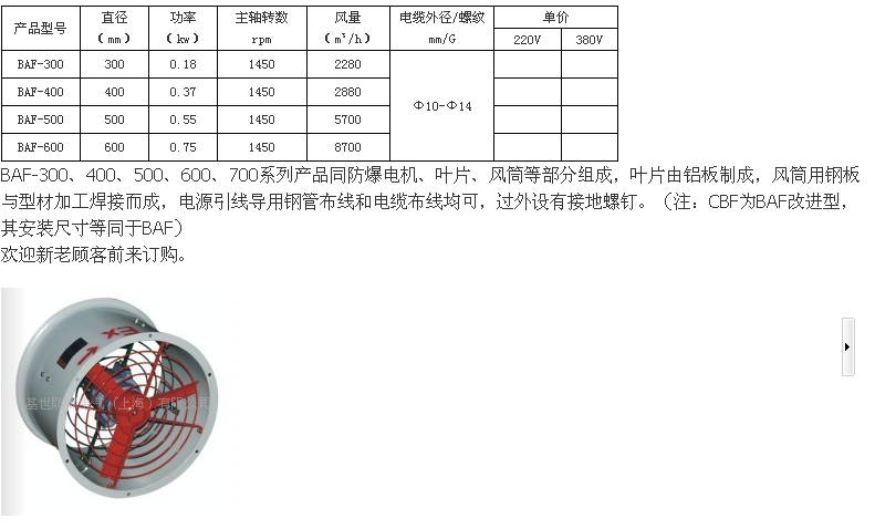 轴流风机 baf-600 风扇风机 防爆风机批发 BT35- 适用范围: 1、1区、2区危险场所。 2、IIA、IIB类爆炸性气体环境。