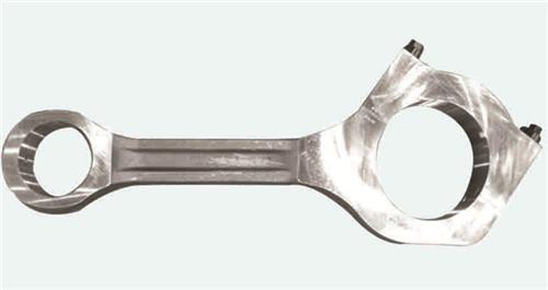 重能动力|发动机连杆|MAN21/31发动机连杆 连杆加工工序多,中间又插入热处理工序,因而需经多次中间检验,最终检查项目和其他零件一样,包括尺寸精度、形状精度和位置精度以及表面粗糙度检验,只不过连杆某些要求较高而已。 由于装配的要求,大小头孔要按尺寸分组,连杆的位置精度要在检具上进行,如大小头孔轴心线在两个互相垂直方向上的平行度。在大小头孔中穿入心轴,大头的心轴放在等高垫铁上,使大头心轴与平板平行。将连杆至于直立位置时,在小头心轴上距离为100mm处测量高度的读数差,即为大小头孔在连杆轴心线方向的平行度误差值;工件置于水平位置时,同样方法测得出来的读数差,即为大小头孔在垂直连杆轴心线方向的平行度误差值。连杆还要进行探伤检查其内在质量。 连杆的加工顺序大致如下:粗铣精磨上下端面——钻、扩、铰小头孔——粗精铣工艺凸台及结合面——两件连杆半圆孔和拼镗大头孔——磨结合面——钻铰定位孔——配钻、攻螺栓孔——合件联结——磨削合件两端面——半精镗大头孔——精镗大、小头孔——钻小油孔、倒角——珩磨大头孔——压装小头孔衬套——铣小头孔端面——精镗小头孔衬套——拆分合件并配对编号——铣轴瓦定位槽——对号装配——退磁、清洗——检验。 连杆小头孔压入衬套后常以金刚镗孔作为最后加工。大头孔常以珩磨或冷挤压作为底孔的最后加工。 整个过程体现出“先粗后精”、“先面后孔”、“先基准面后其他面”、“先主要面后次要面”的工艺顺序。 连杆组包括连杆体、连杆盖、连杆螺栓和连杆轴承等零件。习惯上常常把连杆体、连杆盖和连杆螺栓合起来称作连杆,有时也称连杆体为连杆。 连杆组的功用是将活塞承受的力传给曲轴,并将活塞的往复运动转变为曲轴的旋转运动。连杆小头与活塞销连接,同活塞一起作往复运动;连杆大头与曲柄销连接,同曲轴一起作旋转运动,因此在发动机工作时连杆作复杂的平面运动。连杆组主要受压缩、拉伸和弯曲等交变负荷。zui大压缩载荷出现在作功行程上止点附近,zui大拉伸载荷出现在进气行程上止点附近。在压缩载荷和连杆组作平面运动时产生的横向惯性力的共同作用下,连杆体可能发生弯曲变形。