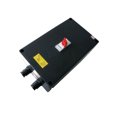 本产品为复合型,外壳选用玻璃纤维增强不饱和聚酯树脂约束而成,内装断路器为我公司特制的防爆元件,外壳选用增安型结构,具有较强的防水、防尘、防腐和耐冲击等功能。通过操作组织及手柄进行操作,并有“分”、“合”指示和电缆引入设备。