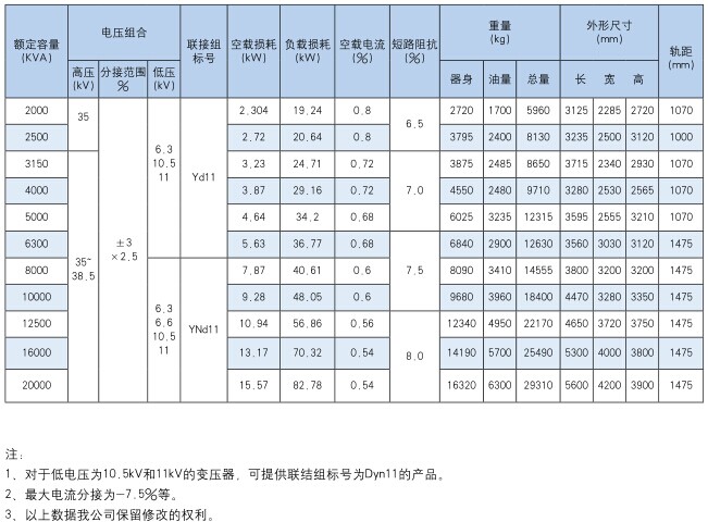 SZ11系列有载调压变压器技术参数:
